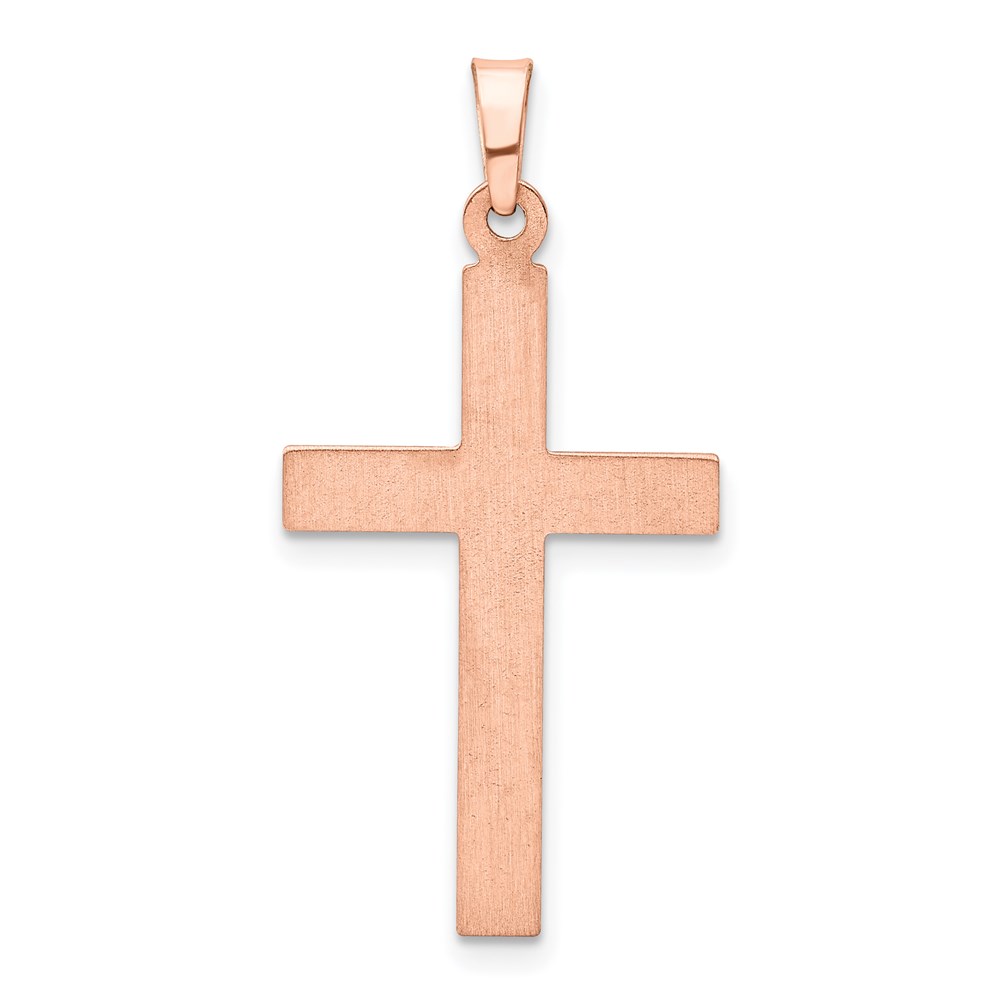 14K Rose Gold Brushed and Polished Hollow Cross Pendant