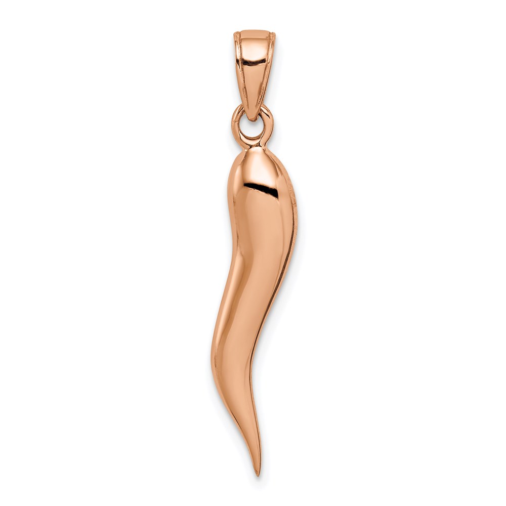 14k Rose Gold Large 3-D Italian Horn Pendant