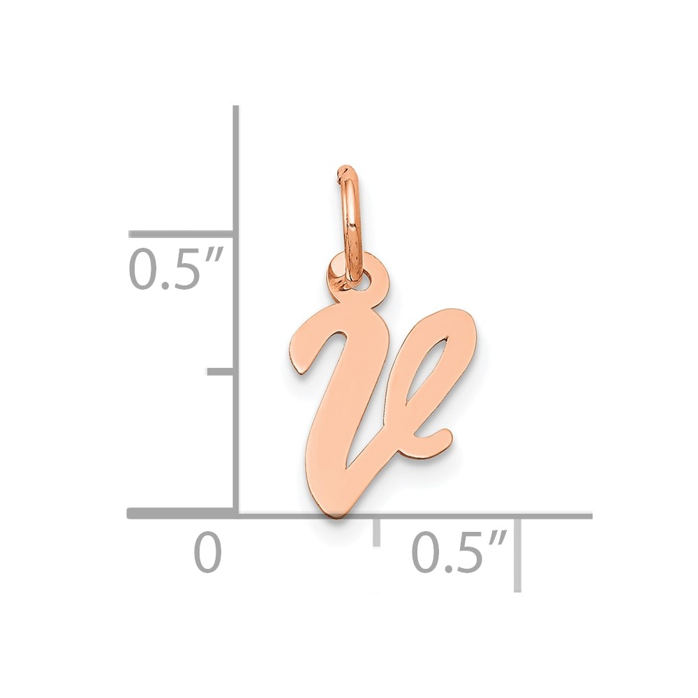 14k Rose Gold Small Script Letter V Initial Charm