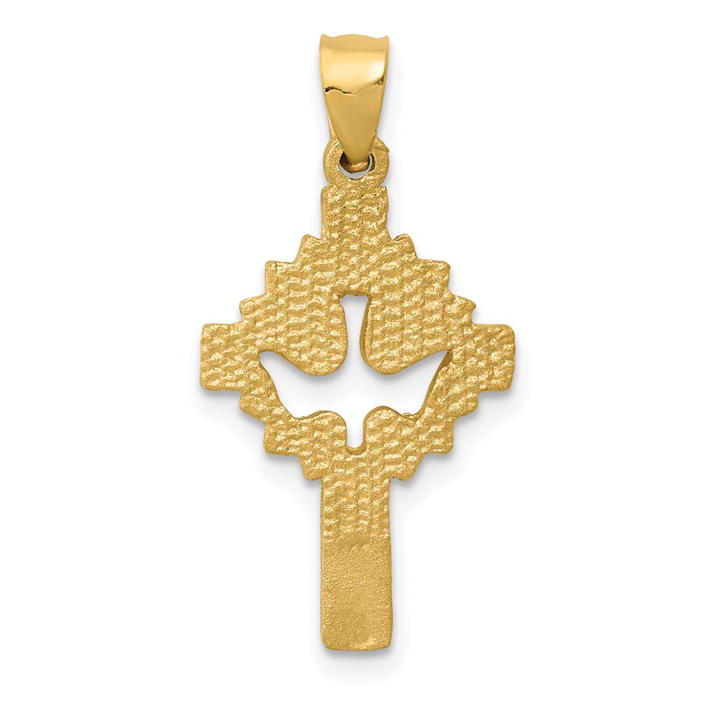 14k Satin Diamond-cut Dove Cross Charm