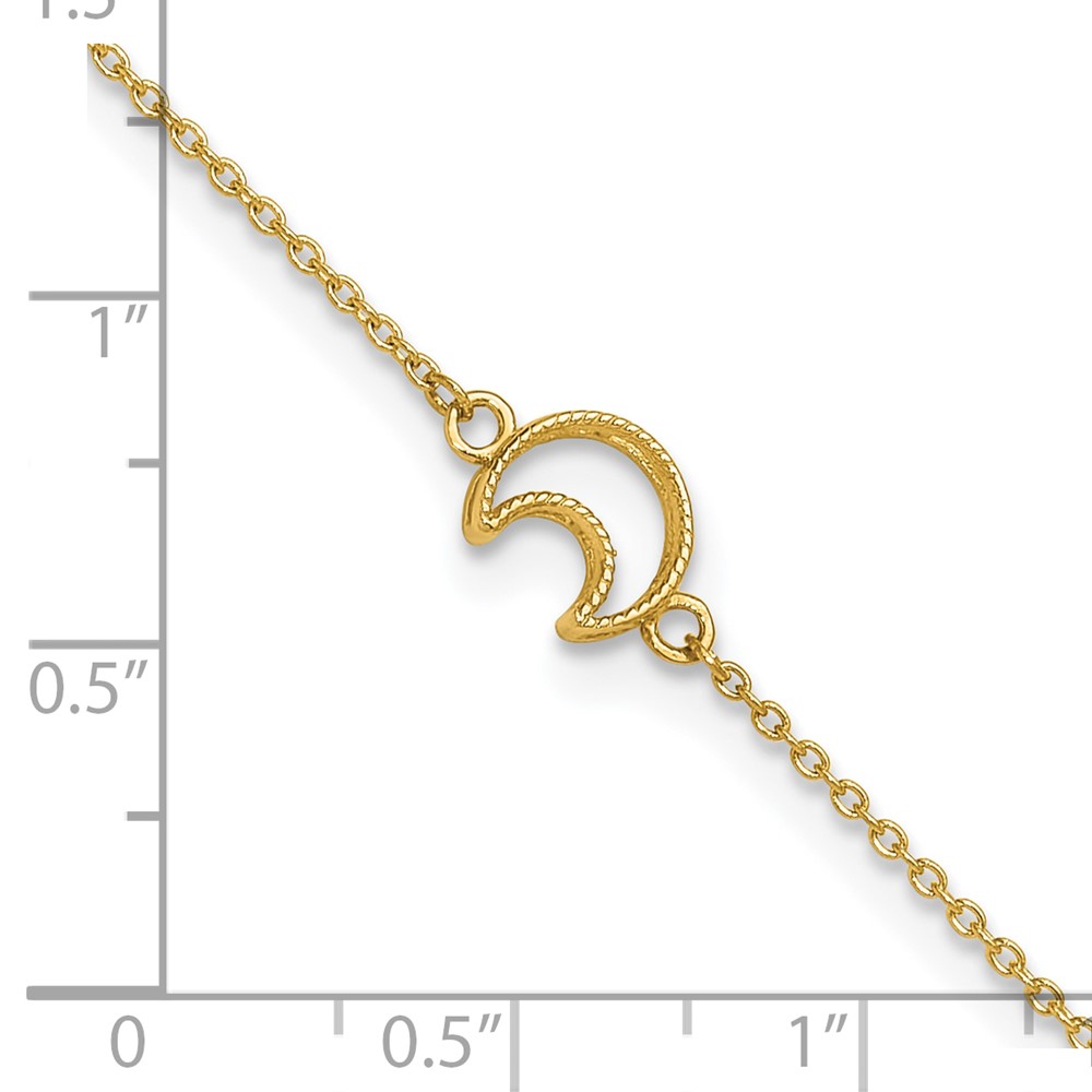 14K Textured and Polished Crescent Moon Plus Extender – Total Anklet