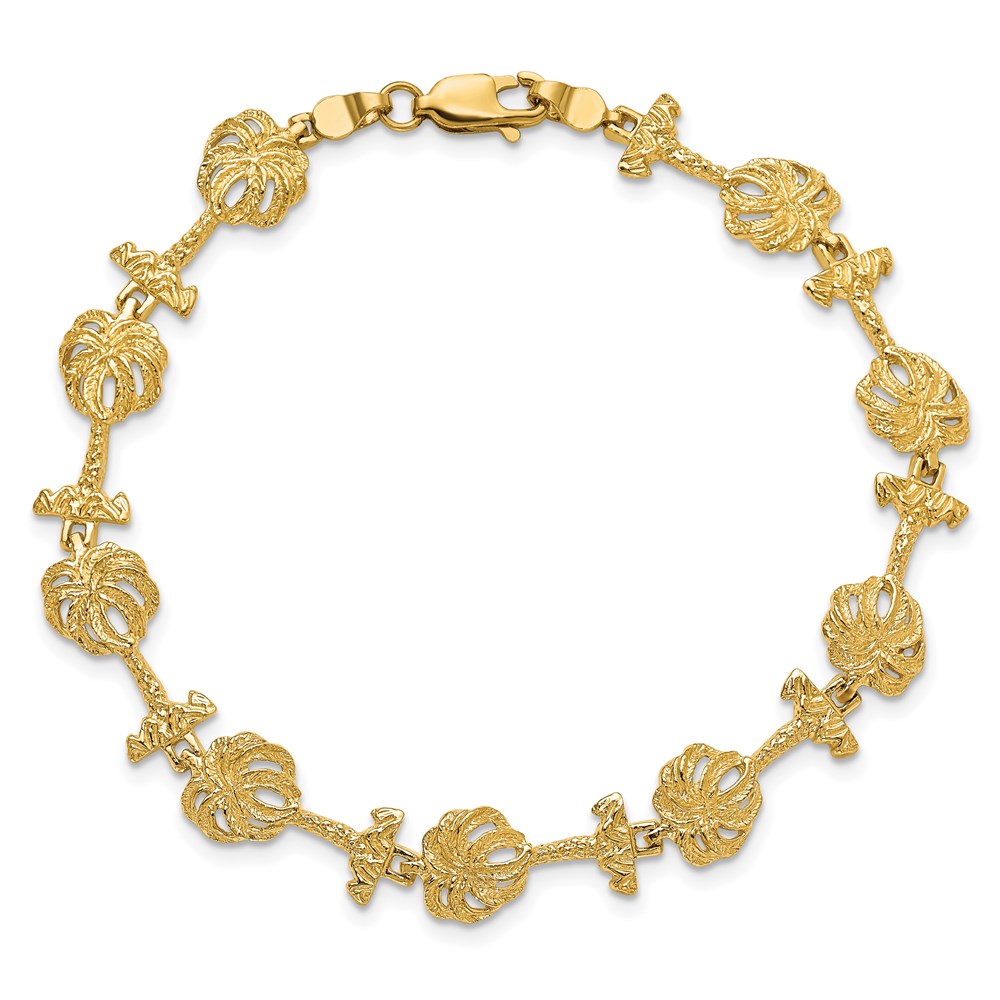 14k Textured Palm Tree 7.25 inch Bracelet
