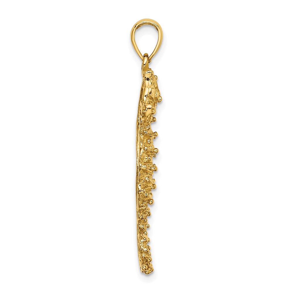 14K 3-D Textured Seahorse with Long Tail Charm