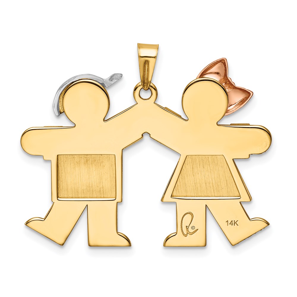14k Tri-color The Kids Medium Girl on Left and Boy on Right Engravable Kiss Charm