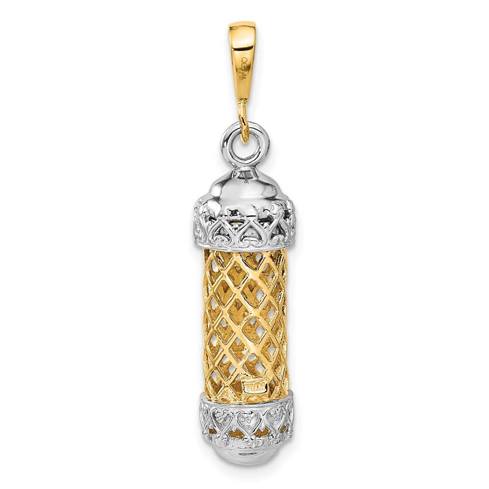 14K Two-Tone 3-D Mezuzah with Shin Charm
