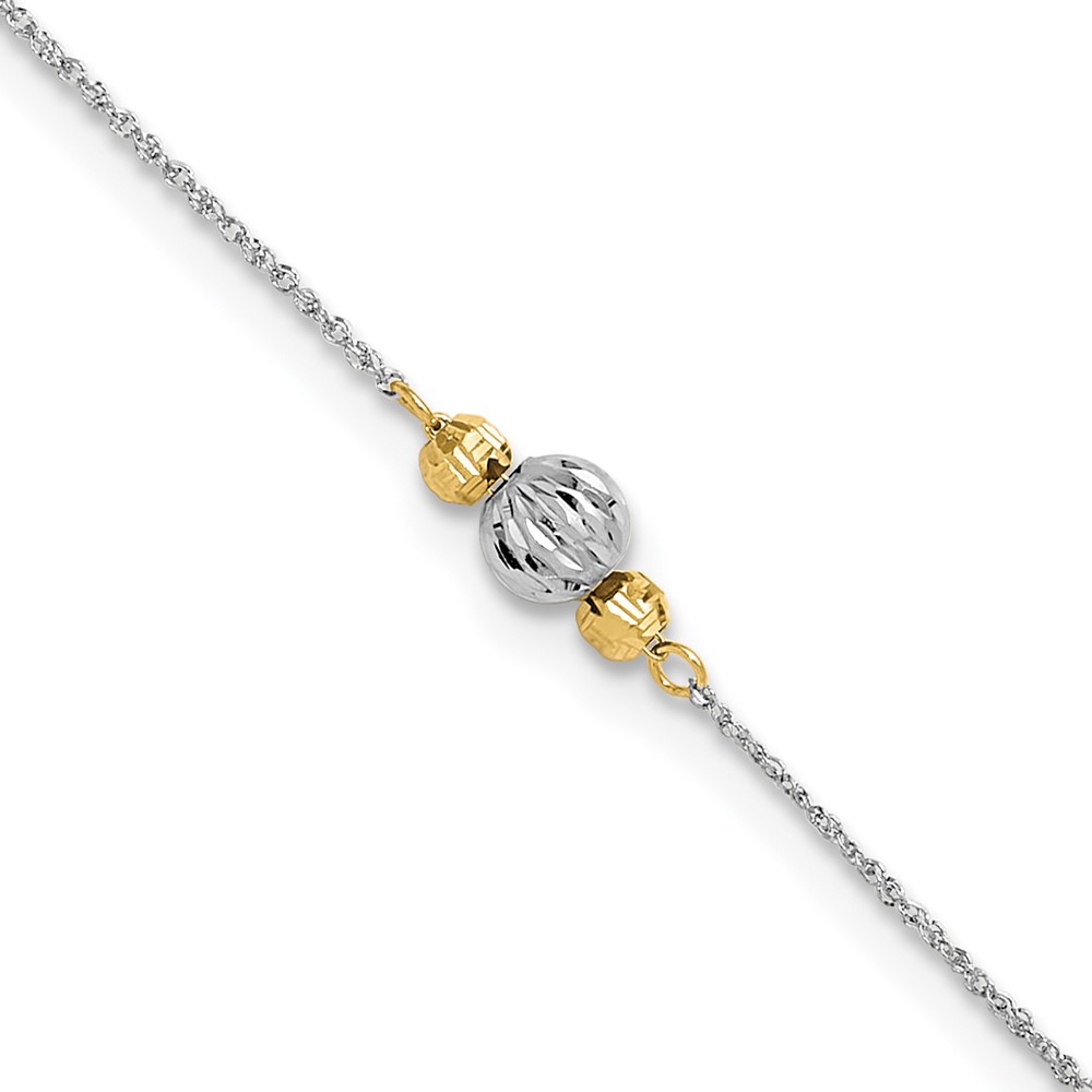 14K Two-tone Chain and Diamond-cut Beads Plus Extender – Total Anklet
