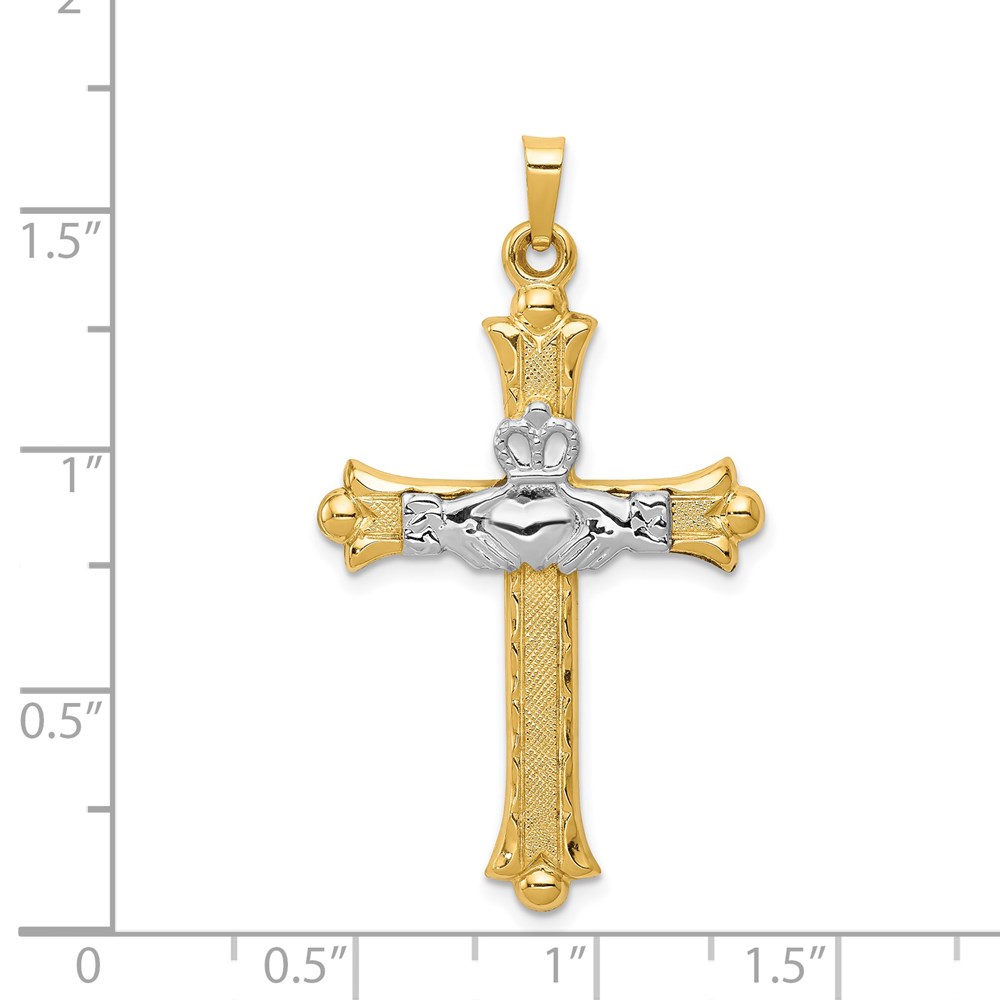 14k Two-tone Claddagh Cross Pendant