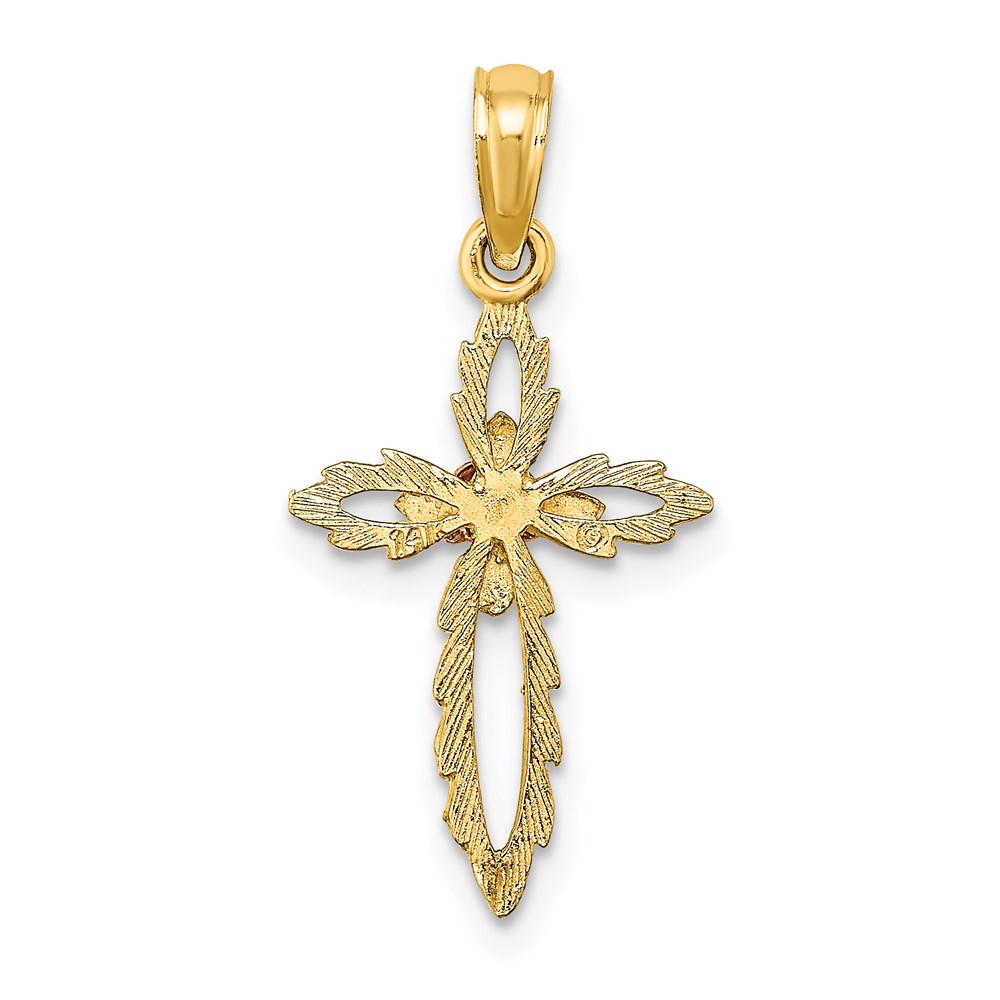 14k Two-tone Cut-Out Cross with Flower Charm
