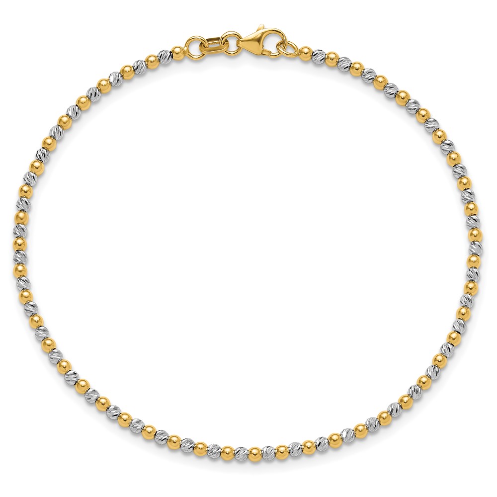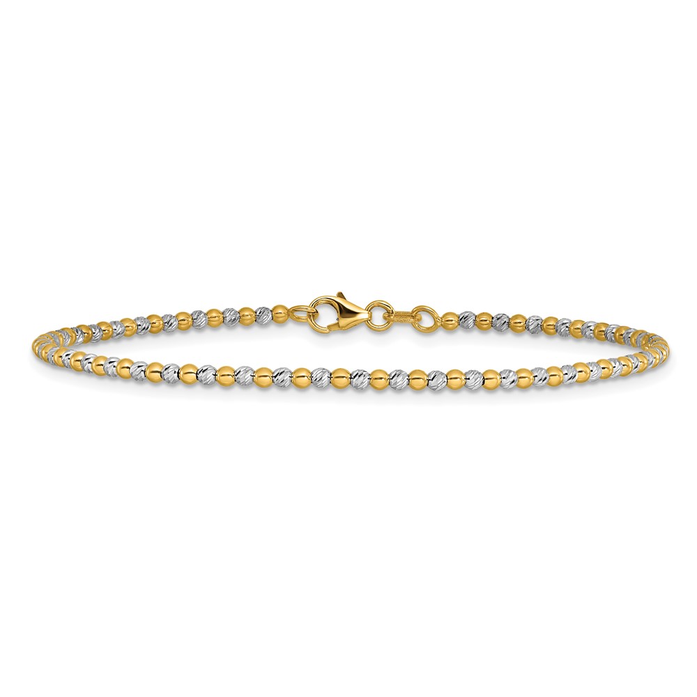 14K Two-tone Diamond-cut Beaded 7.5 inch Bracelet