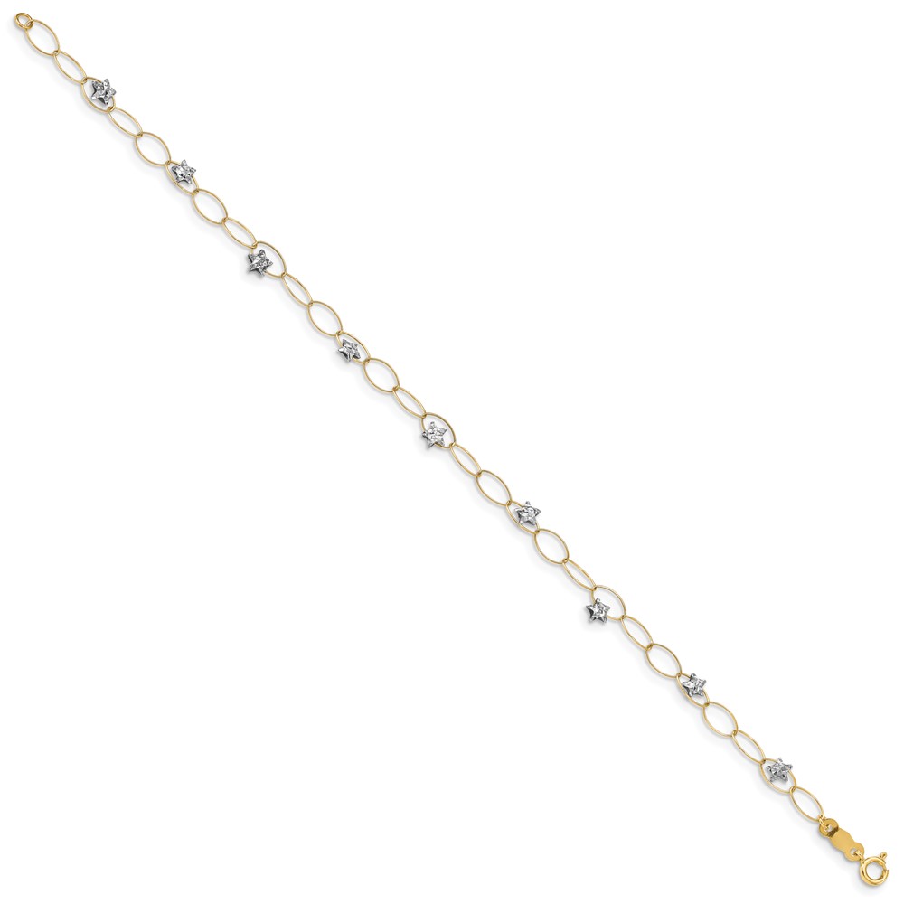 14k Two-tone Diamond-cut Puffed Stars and Oval Link 7.25 inch Bracelet