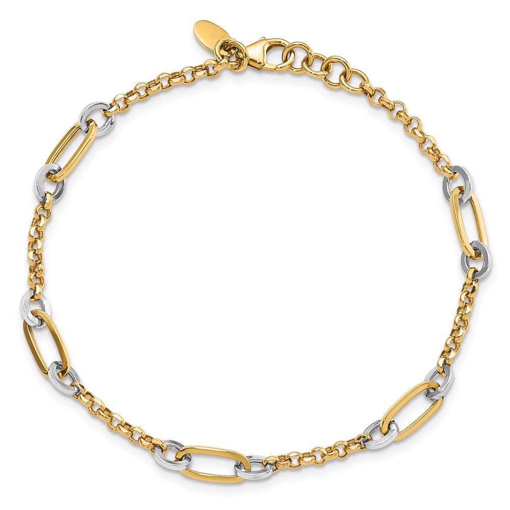 14K Two-tone Fancy Oval Link and Chain 7.25 inch Bracelet Plus 0.5 inch Extender