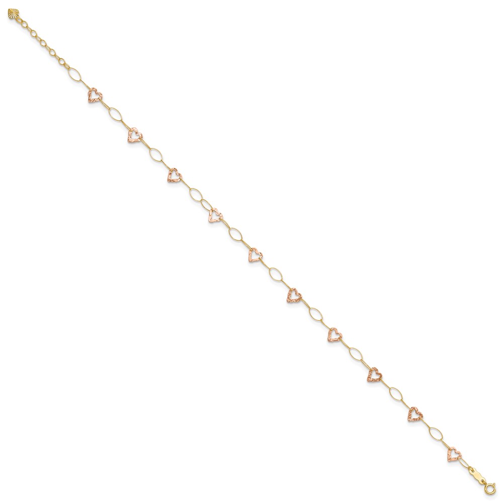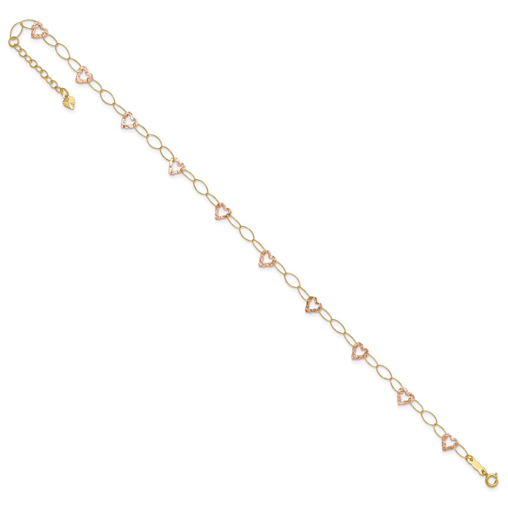 14k Two-tone Hammered Open Hearts and Oval Link Plus Extender – Total Anklet