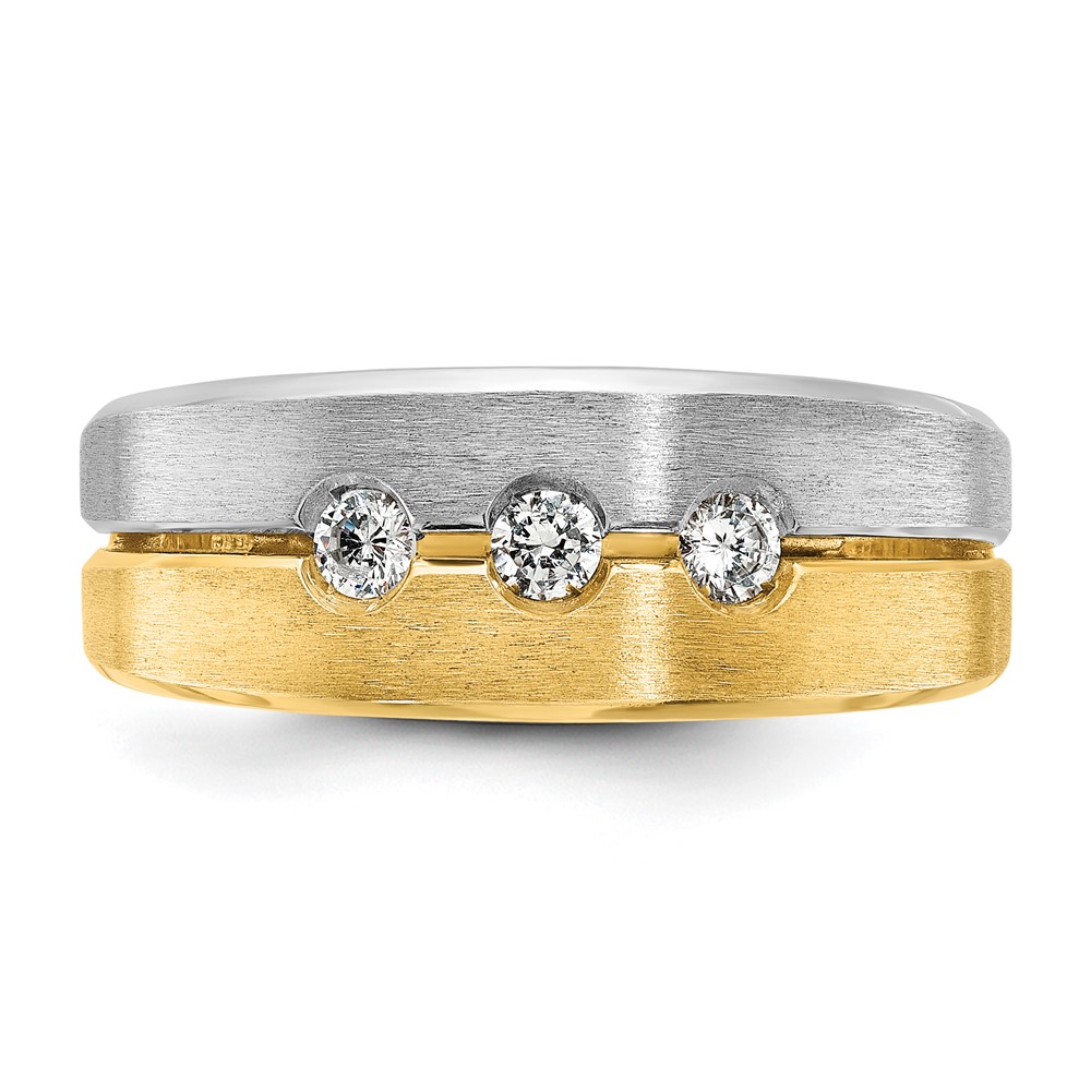 IBGoodman 14k Two-tone Men’s Polished and Satin 3-Stone 1/2 Carat AA Quality Diamond Ring