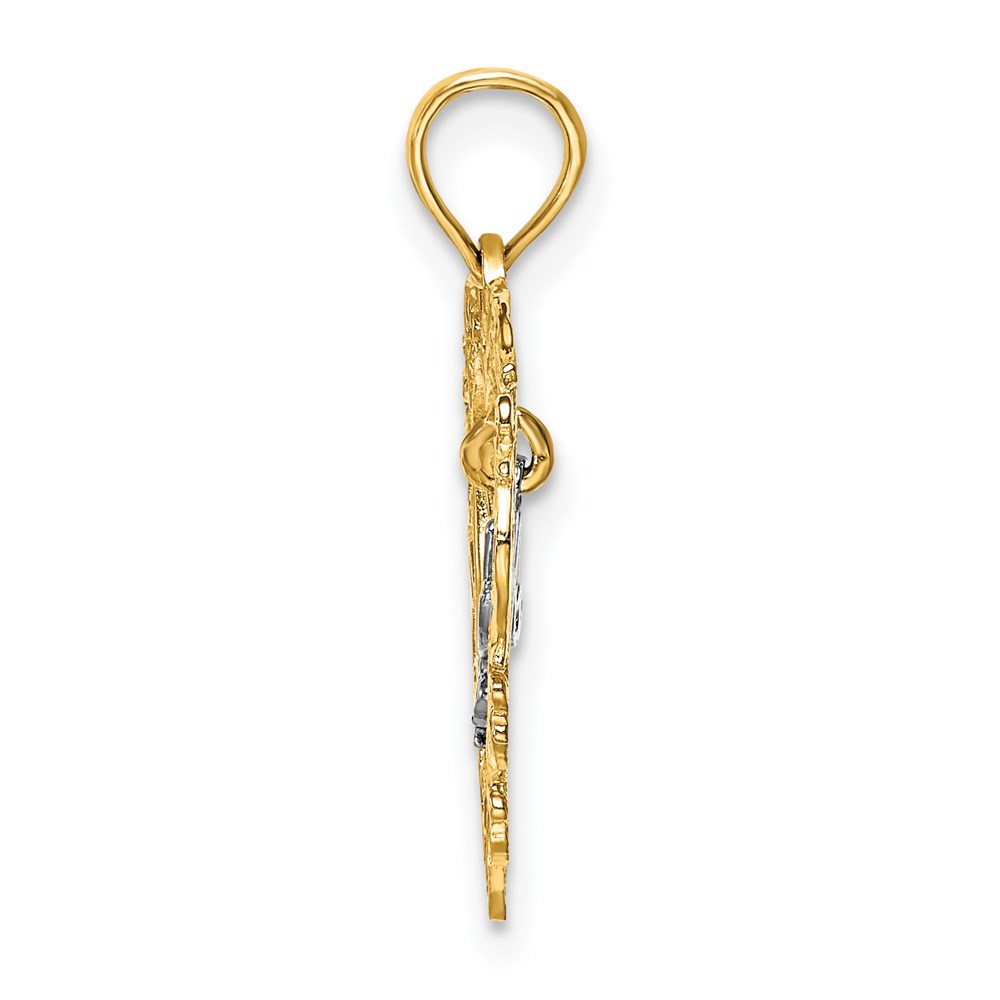 14k Two-tone with White Rhodium MADRE Heart with Doves Charm