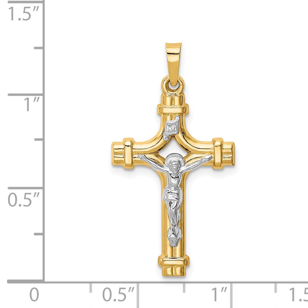 14k White Gold Polished INRI Rounded Crucifix Pendant