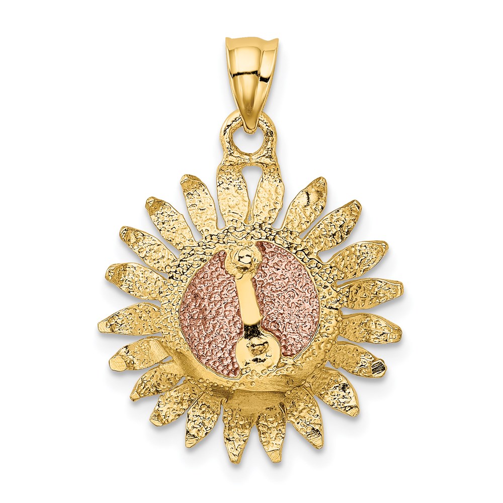 14k Two-tone Polished Sunflower Pendant