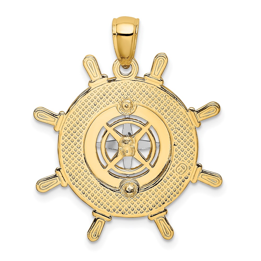 14K Two-tone Ships Wheel with Nautical Compass Charm