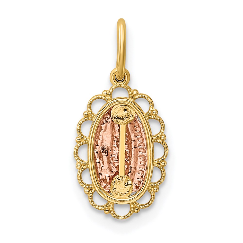 14k Two-tone Small Our Lady of Guadalupe Scalloped Edge Oval Pendant