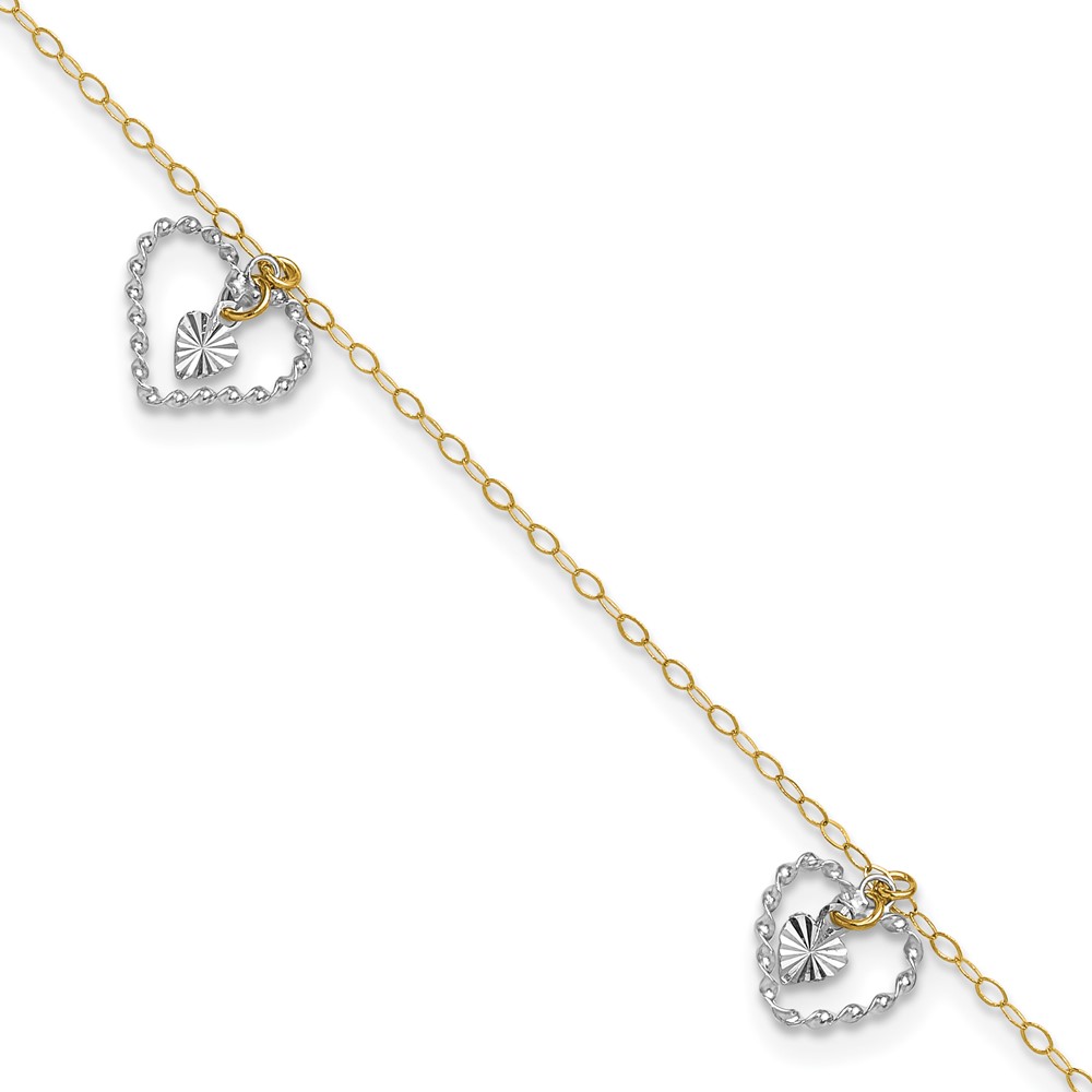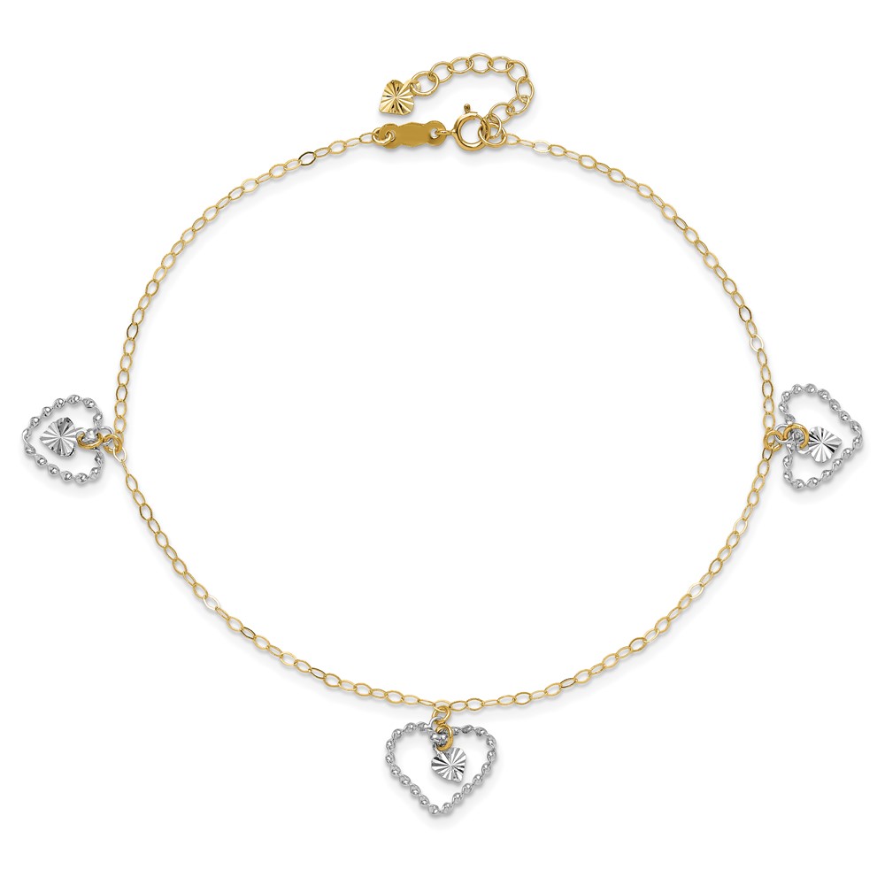 14K Two-tone Twisted Diamond-cut 3 Heart Dangles Plus Extender – Total Anklet