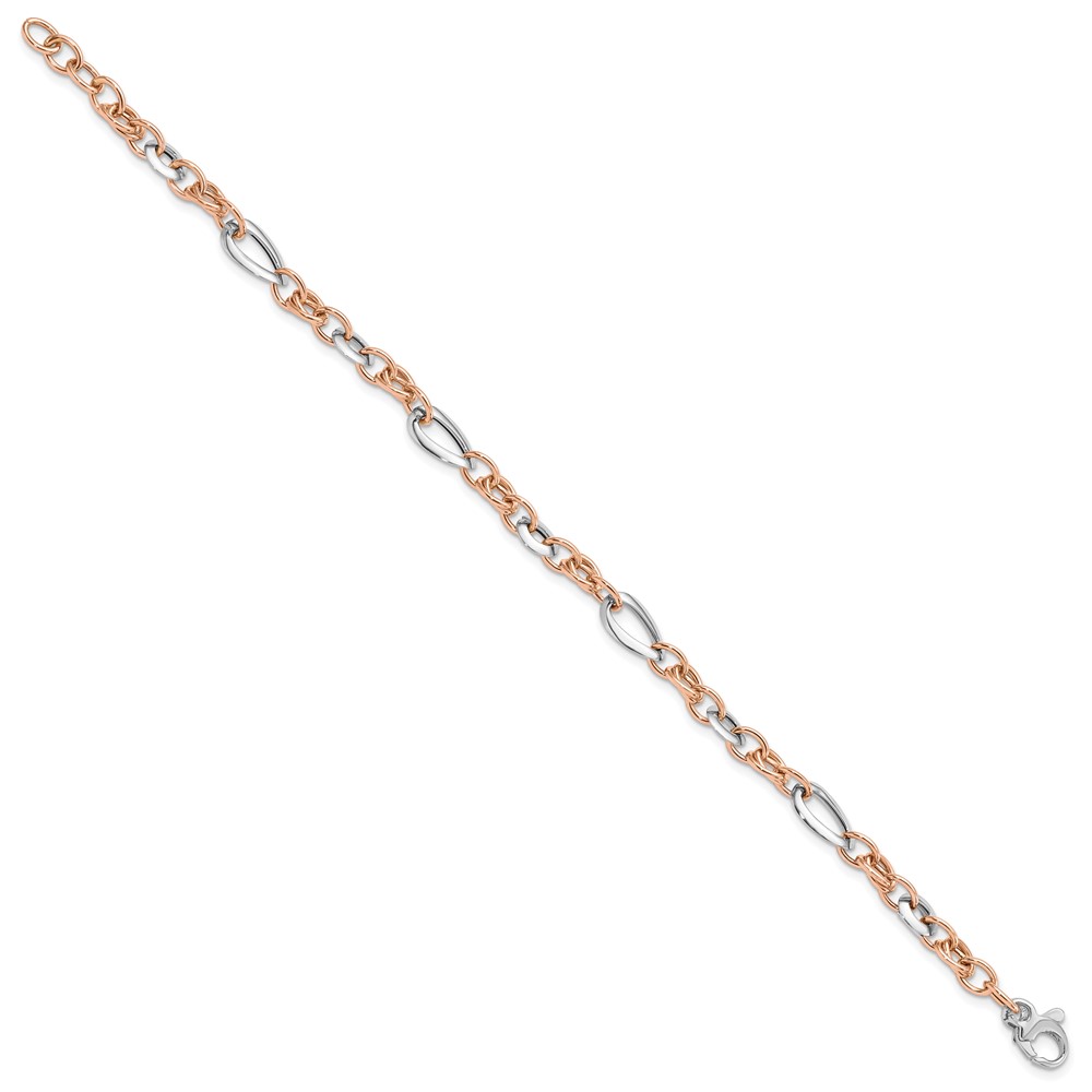 14K Two-tone White and Rose 6.8mm Fancy Link 8 inch Bracelet