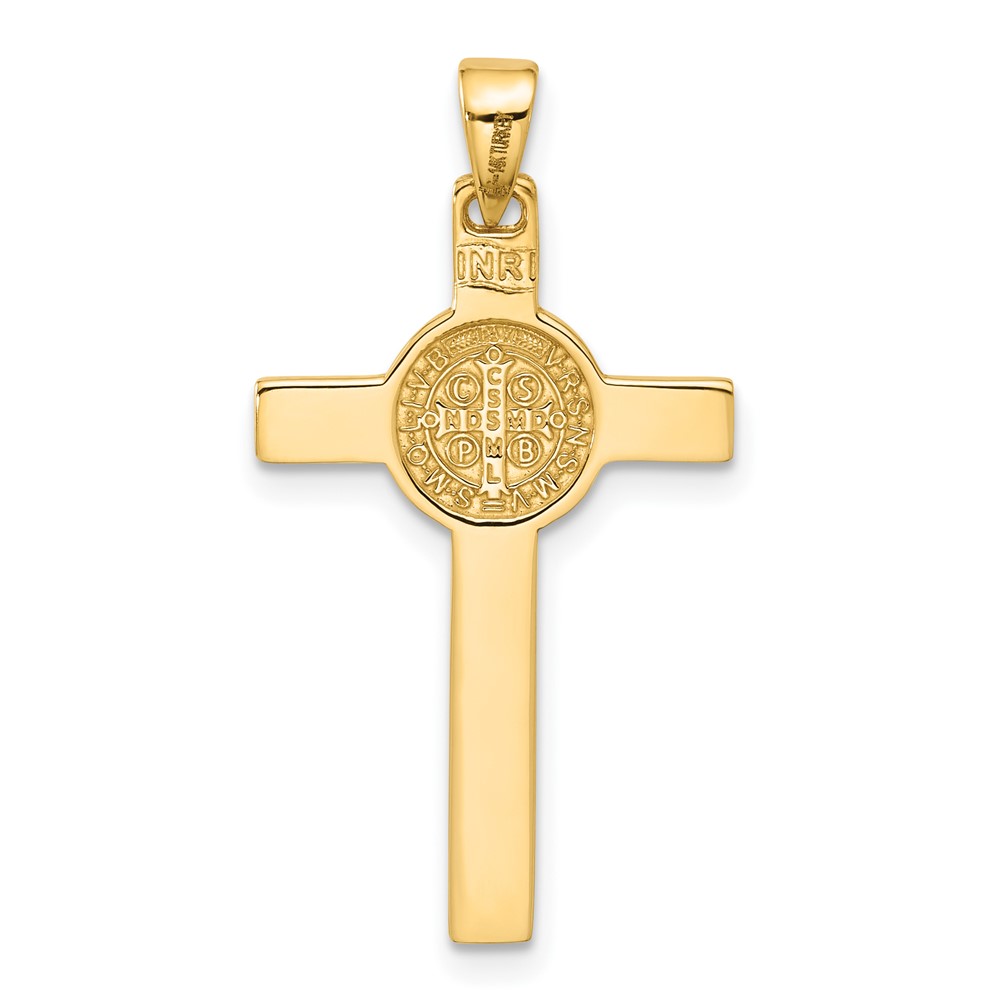 14K Polished Crucifix and St Benedict Pendant