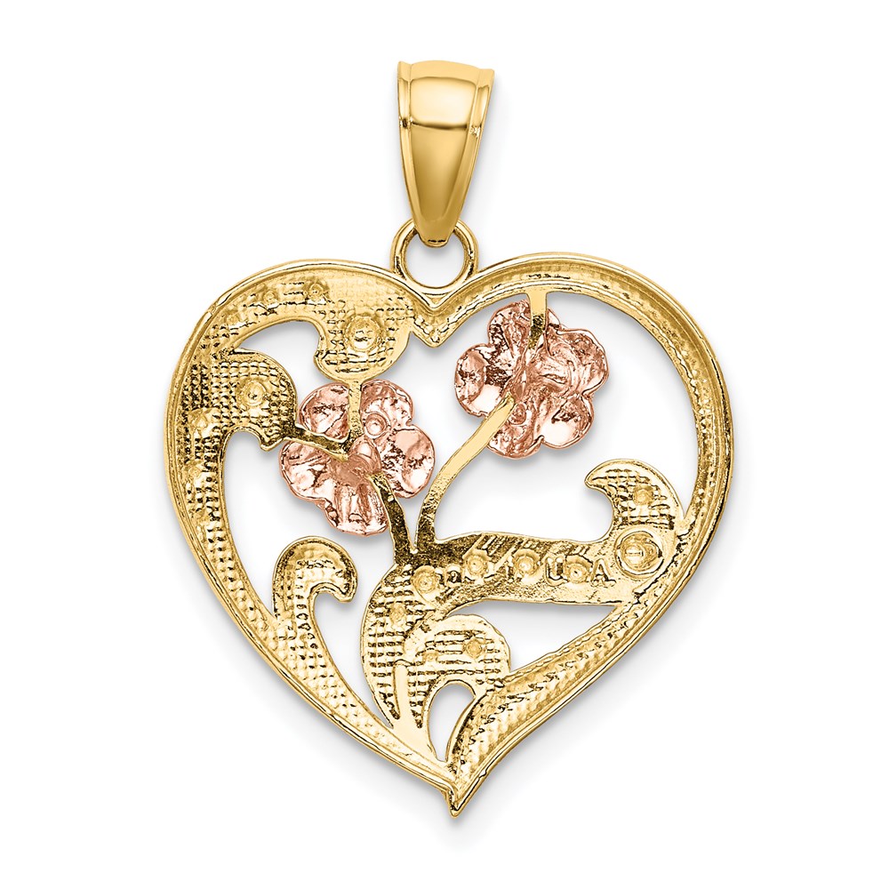 14k Two-Tone with White Rhodium Flower Heart Charm