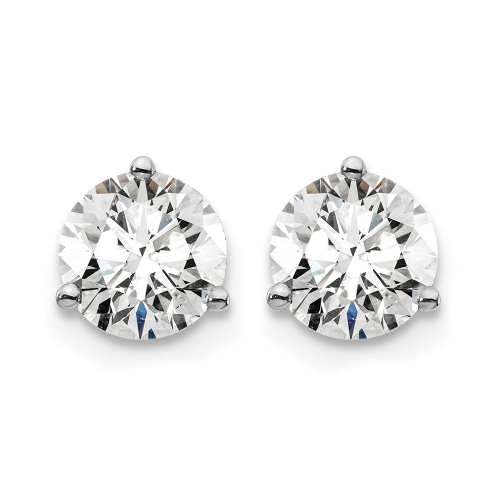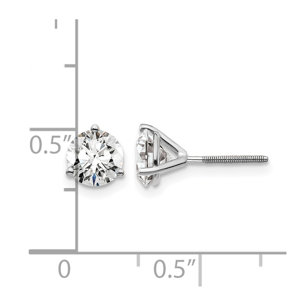14k White Gold 1 1/2 carat Lab Grown Diamond VS/SI+ G+ Round Complete Three Prong Screwback Stud Earrings
