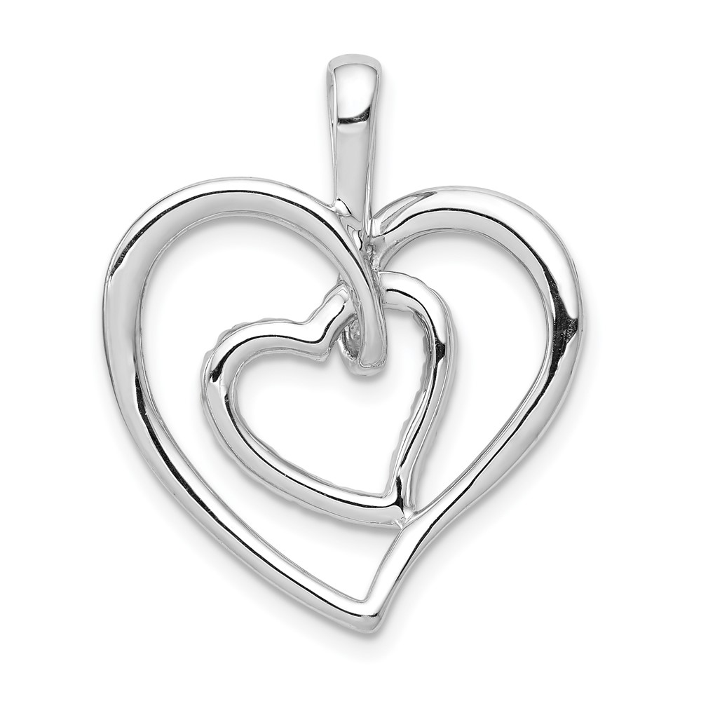 14k White Gold 1/10 carat Diamond Double Heart Pendant