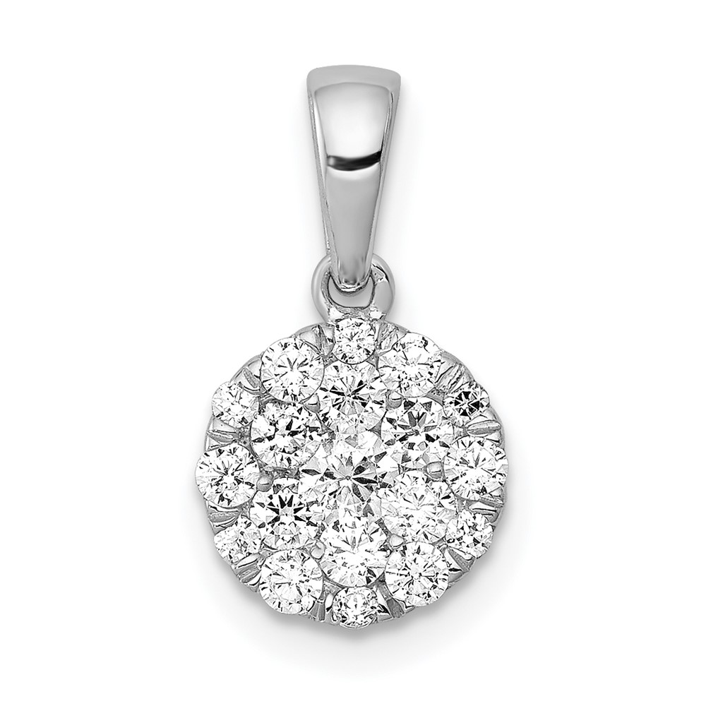 14k White Gold 1/2 carat Diamond Round Cluster Pendant