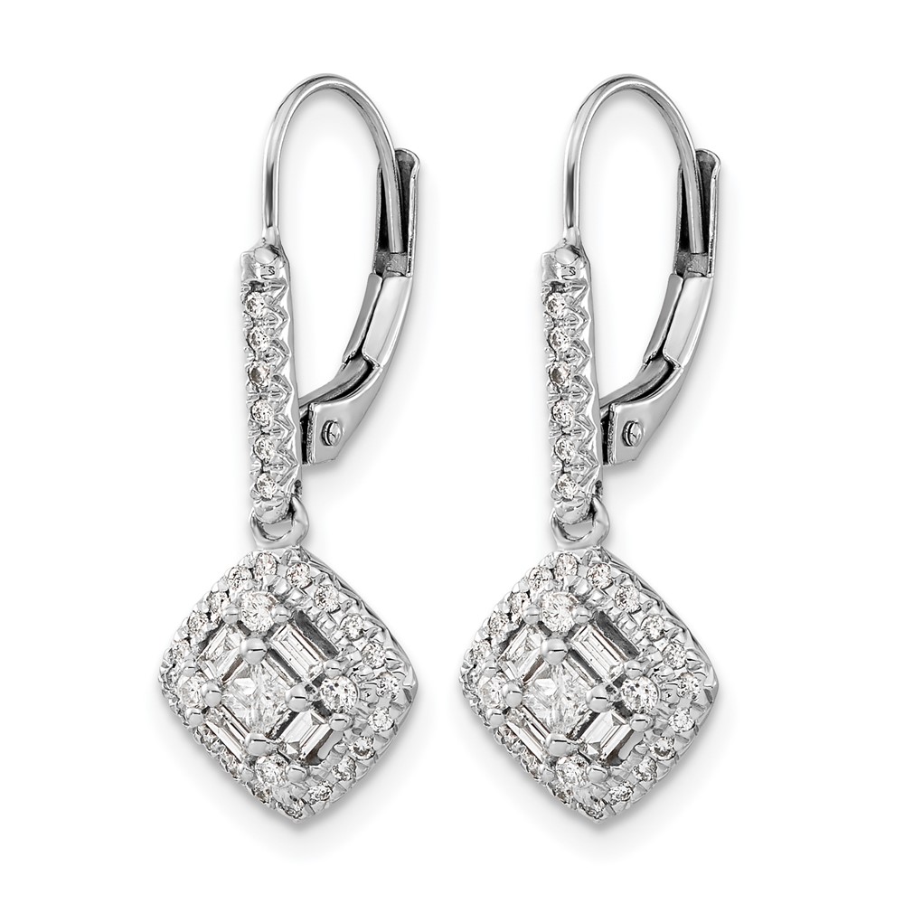 14k White Gold 1/2 carat Diamond Square Cluster Leverback Earrings
