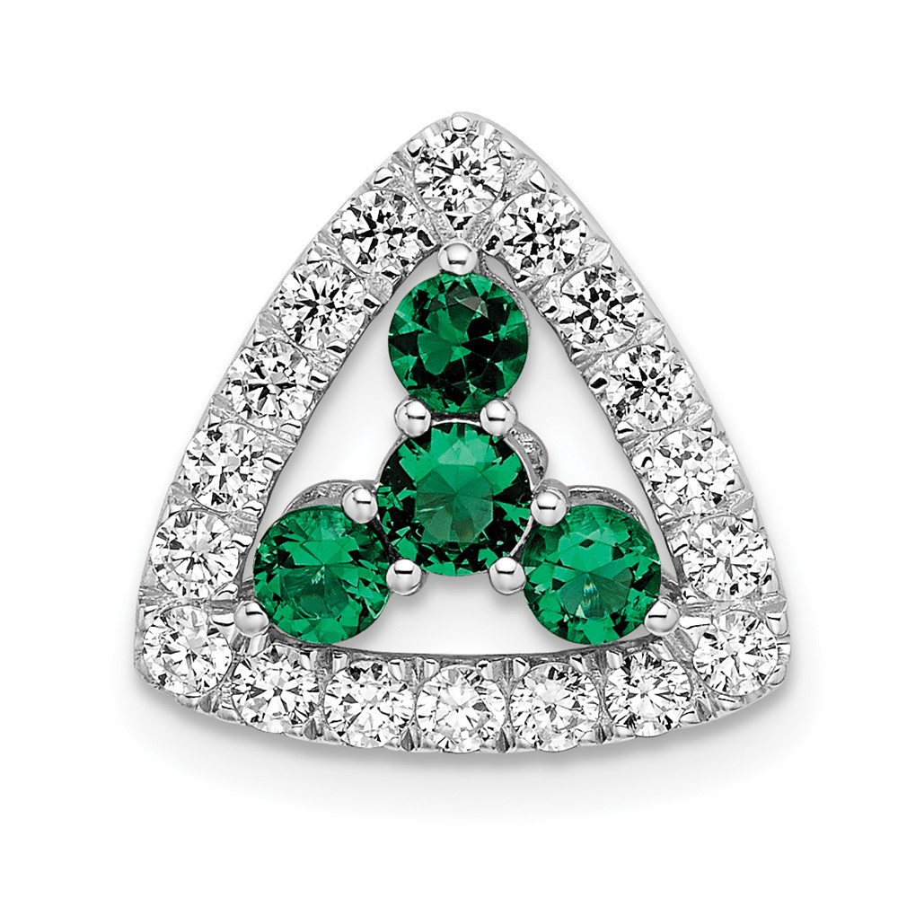 14k White Gold 1/2 carat Lab Grown Diamond VS/SI+ G+ and Lab Created Emerald Triangle Complete Chain Slide Pendant