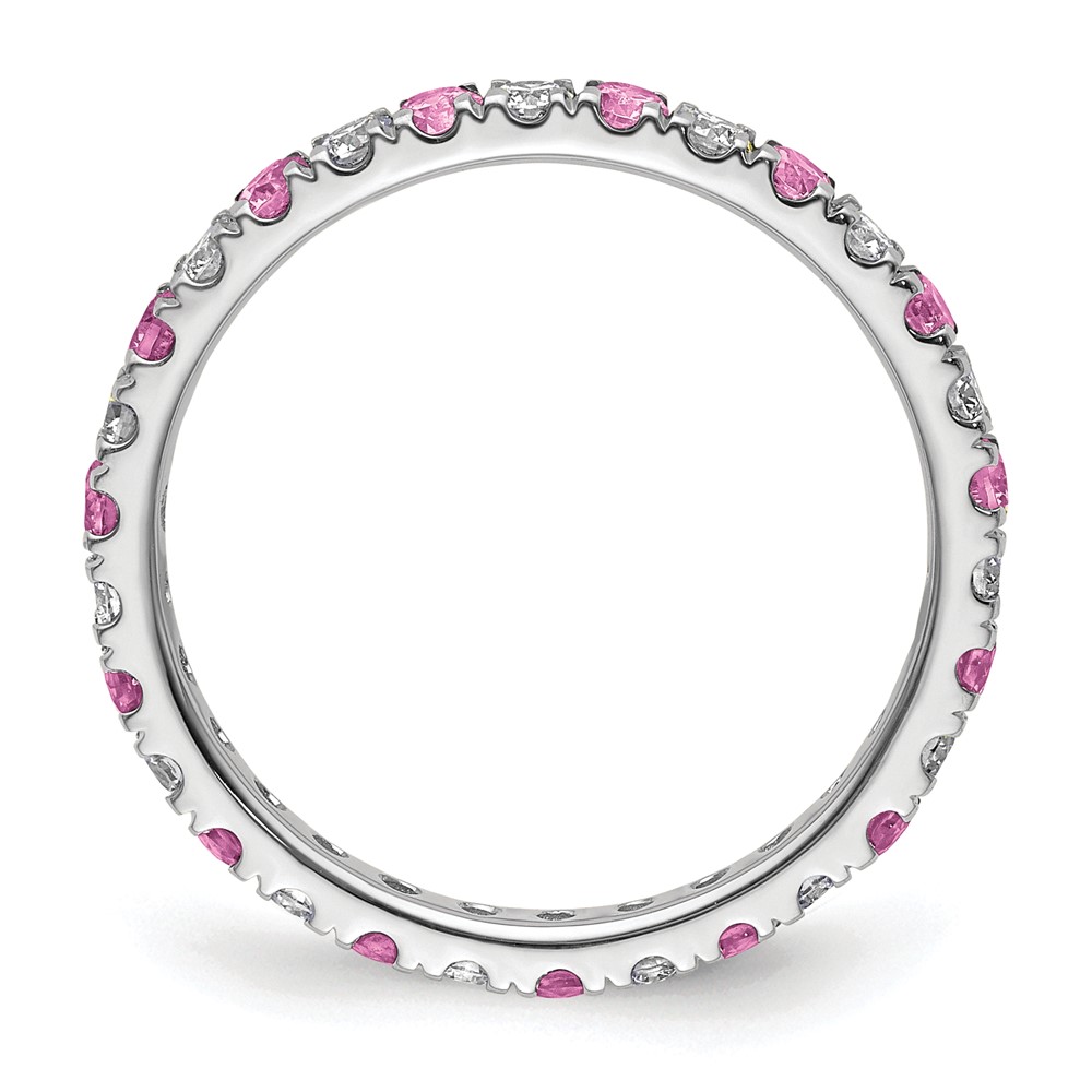 14k White Gold 1/2 carat Lab Grown Diamond VS/SI+ G+ and Lab Created Pink Sapphire Size 8 Eternity Band