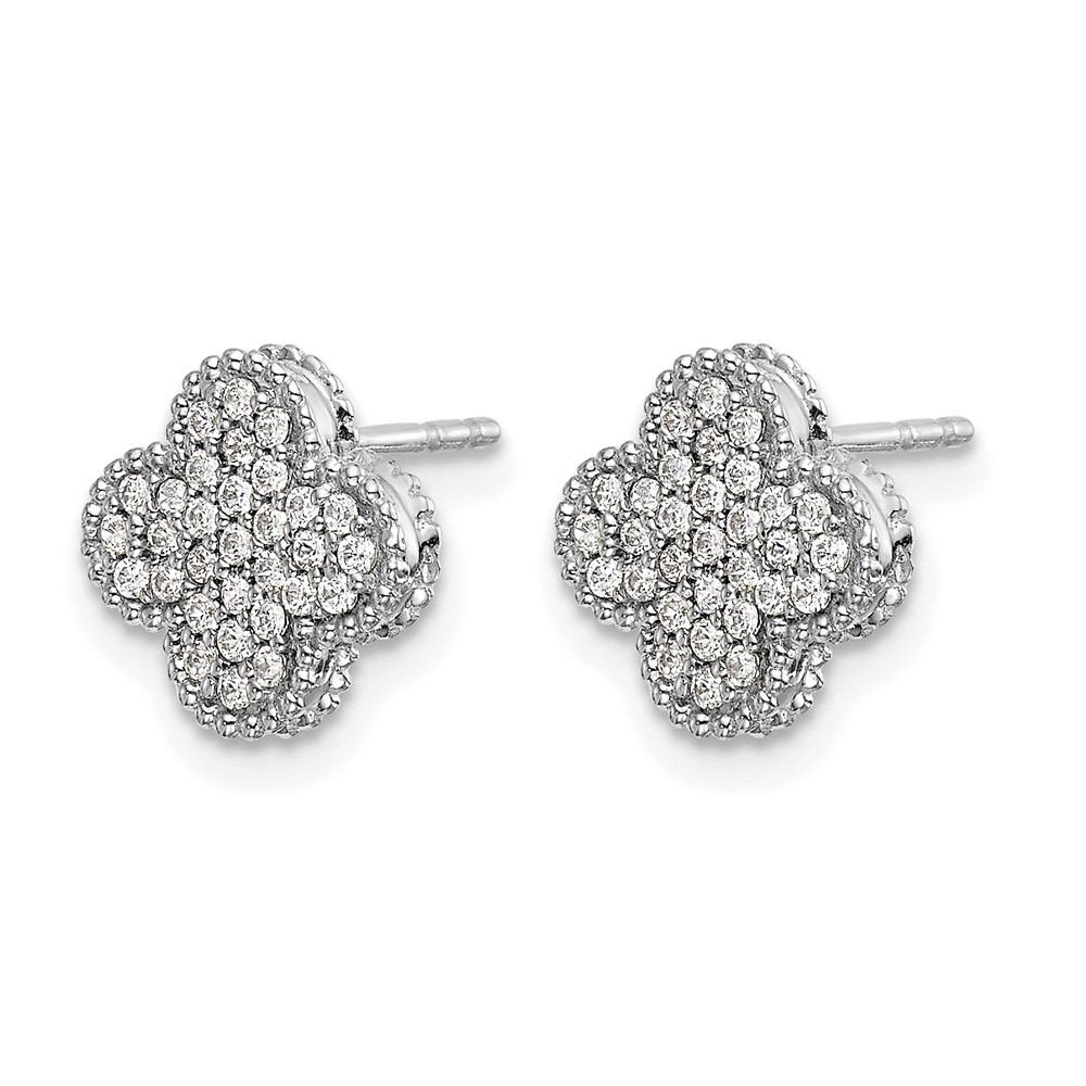 14k White Gold 1/3 carat Pave Diamond Quatrefoil Post Earrings
