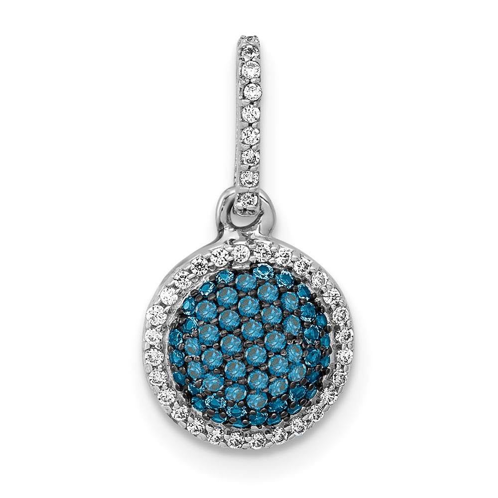 14k White Gold 1/3 carat White and Blue Diamond Round Halo Cluster Pendant