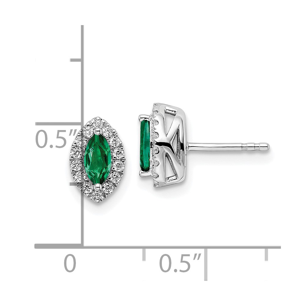 14k White Gold 1/3 carat Lab Grown Diamond VS/SI+ G+ and Created Emerald Complete Fashion Post Earrings