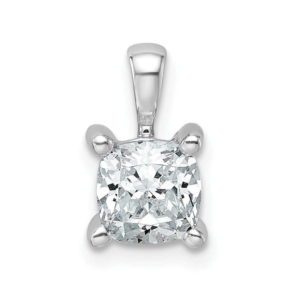 14k White Gold 1 carat Lab Grown Diamond VS+ F+ Cushion Complete Four Prong Pendant
