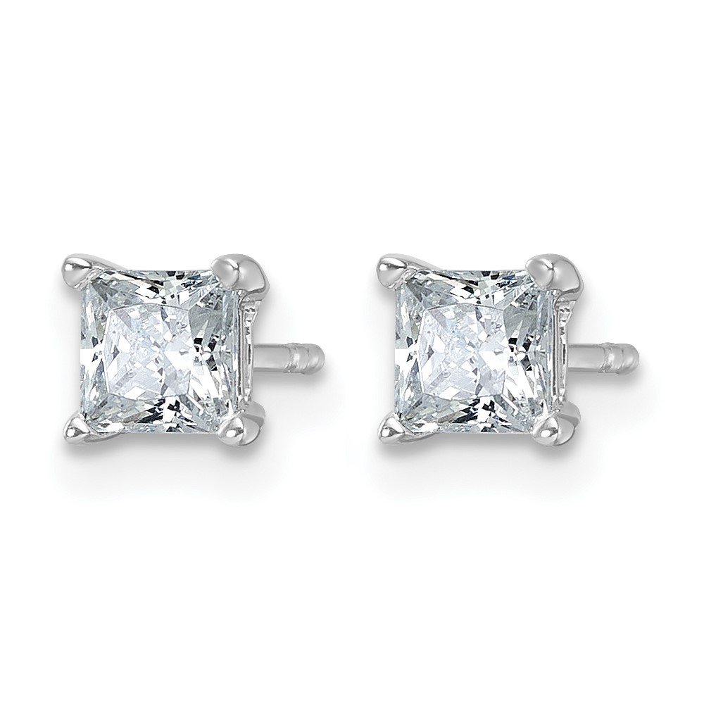 14k White Gold 1 carat Lab Grown Diamond VS+ F+ Princess Complete Four Prong Stud Earrings