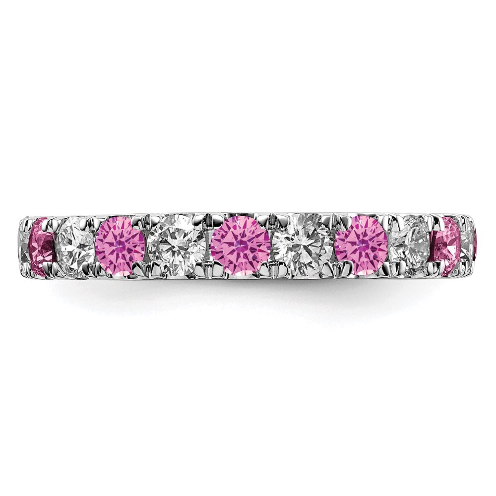 14k White Gold 1 carat Lab Grown Diamond VS/SI+ G+ and Lab Created Pink Sapphire Size 6.5 Eternity Band