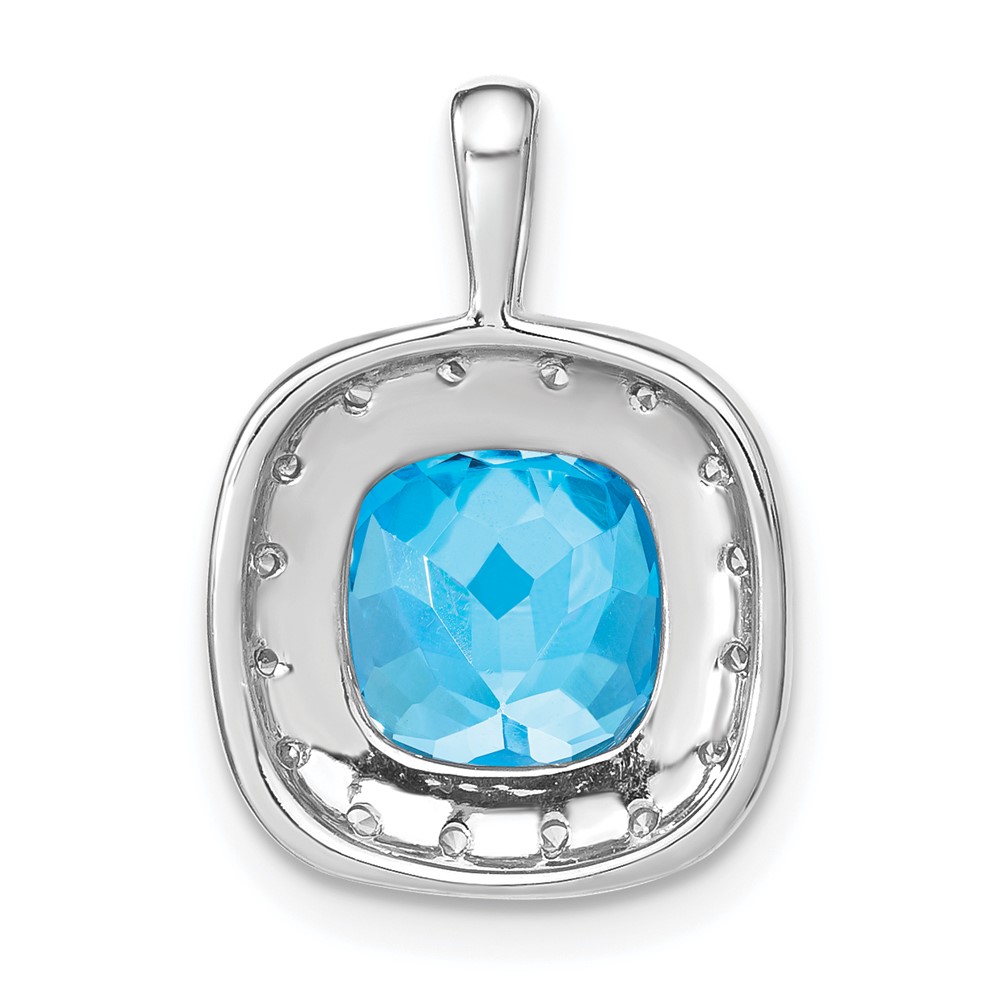 14k White Gold 10mm Cushion Blue Topaz and Diamond Halo Pendant