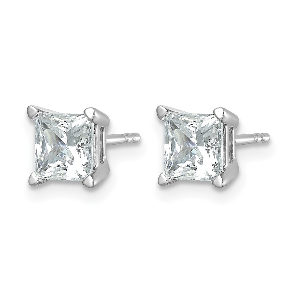 14k White Gold 2 carat Certified Lab Grown Diamond VS/SI+ G+ Princess Complete Four Prong Stud Earrings