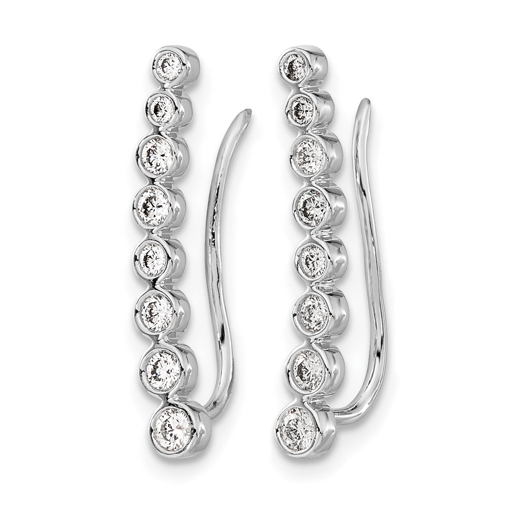 14k White Gold 3/8 carat Diamond Bezel Graduated Ear Climber Earrings