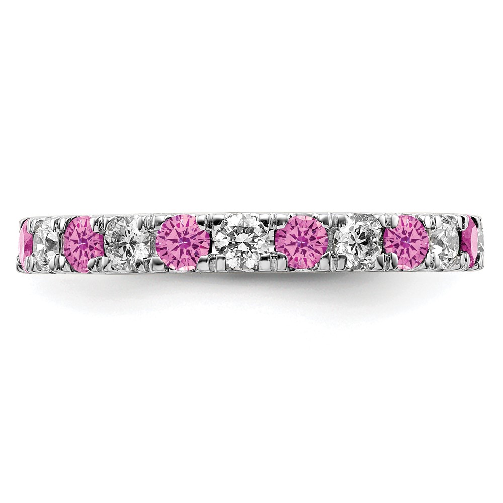 14k White Gold 3/8 carat Lab Grown Diamond VS/SI+ G+ and Lab Created Pink Sapphire Size 5 Eternity Band