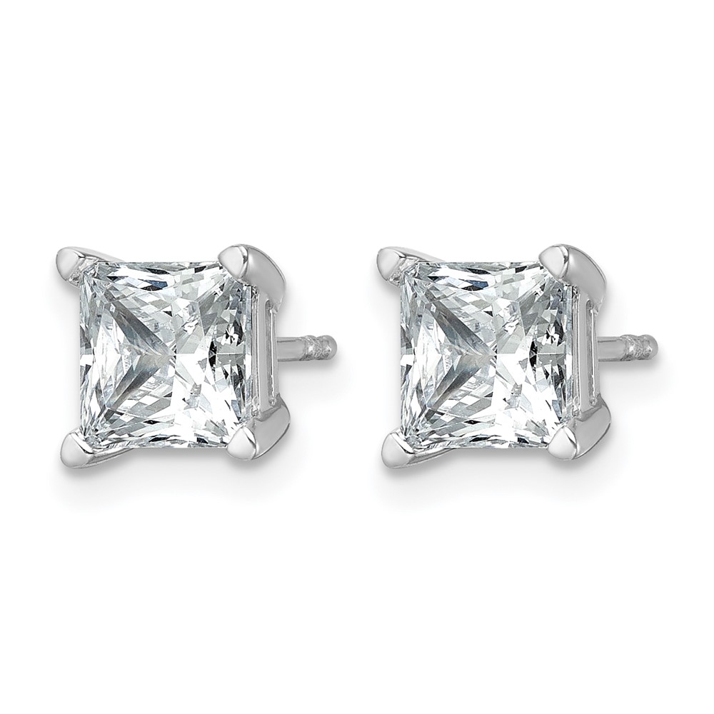 14k White Gold 3 carat Lab Grown Diamond VS+ F+ Princess Complete Four Prong Stud Earrings