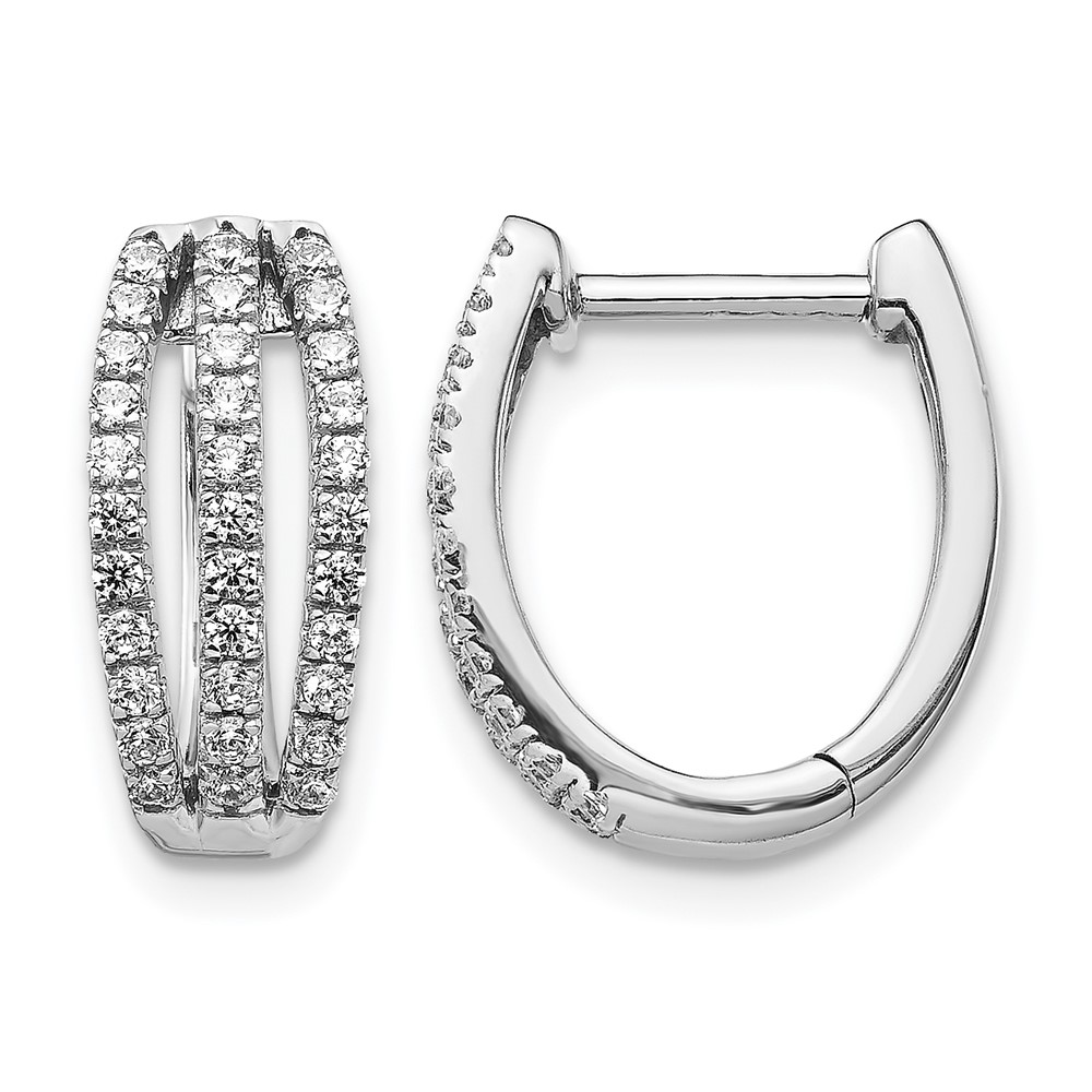 14k White Gold 3-row Diamond Hinged Hoop Earrings