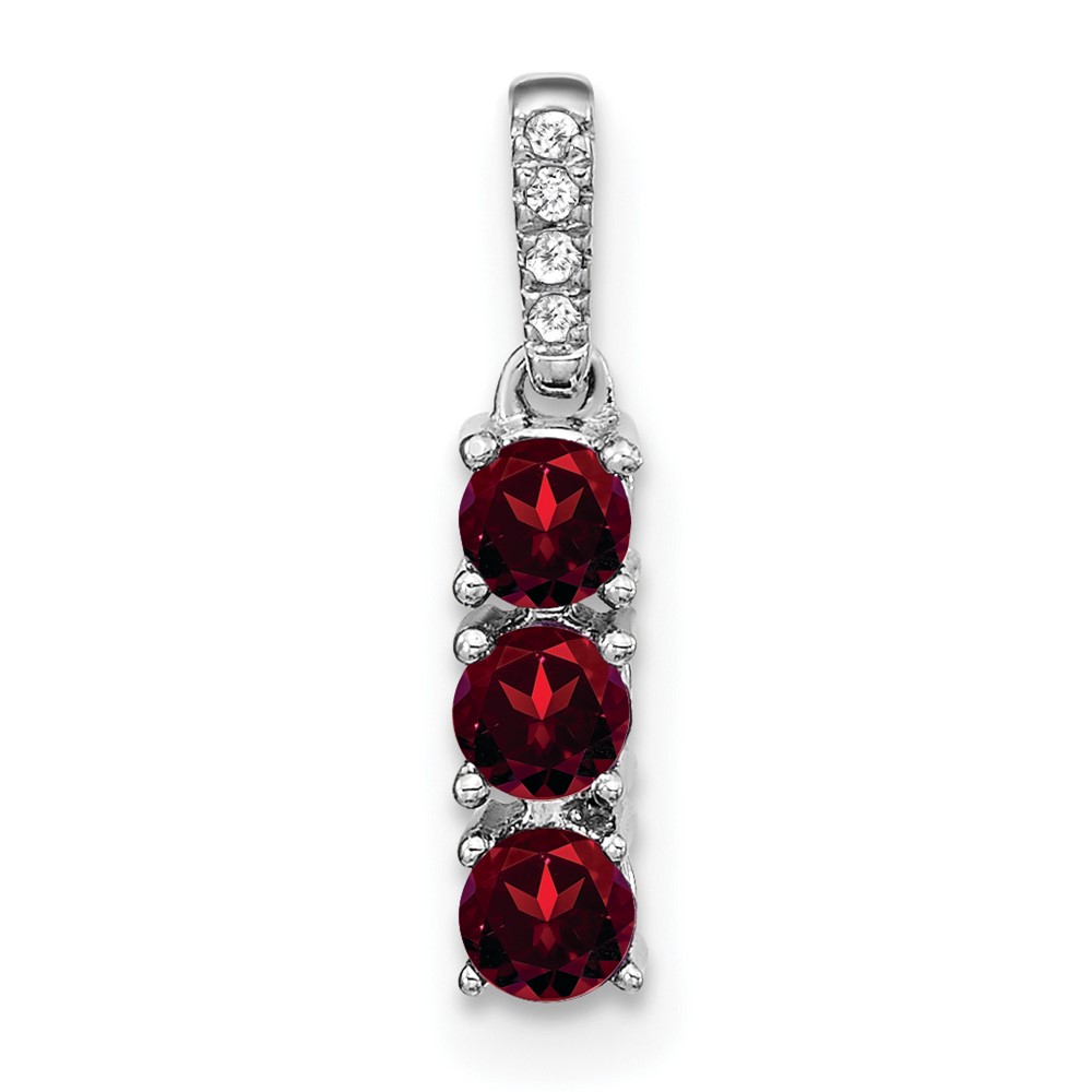 14k White Gold 3-stone Garnet and Diamond Pendant