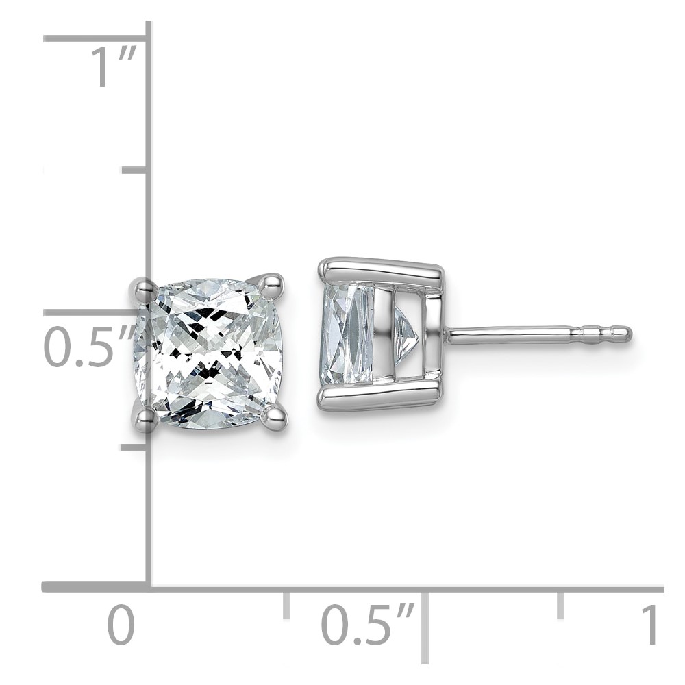 14k White Gold 4 carat Lab Grown Diamond VS/SI+ G+ Cushion Complete Four Prong Stud Earrings
