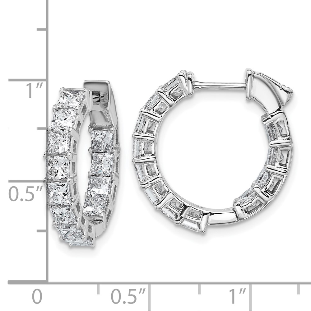 14k White Gold 4 carat Lab Grown Diamond VS/SI+ G+ Princess Complete In and Out Hoop Earrings