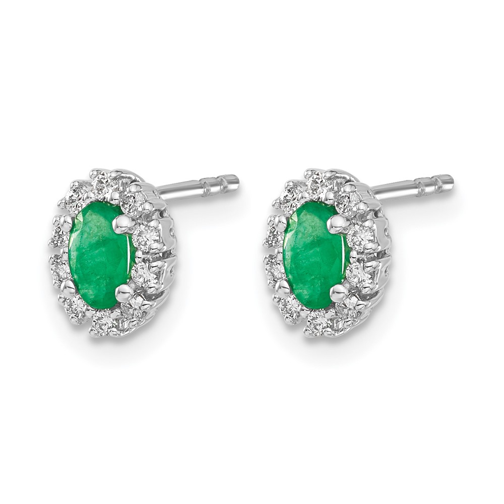 14k White Gold 5x3mm Oval Emerald and Diamond Halo Post Earrings