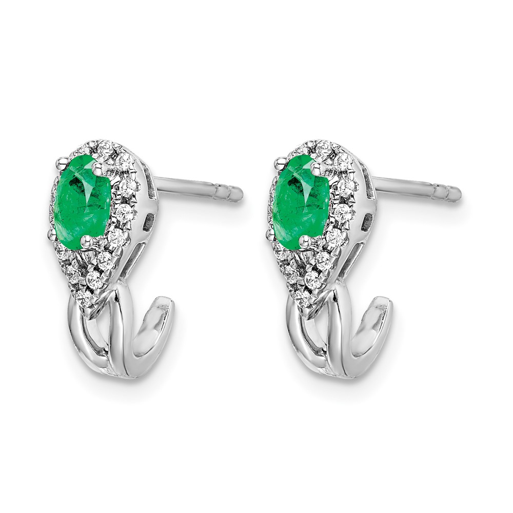 14k White Gold 5x3mm Oval Emerald and Diamond J-Hoop Post Earrings
