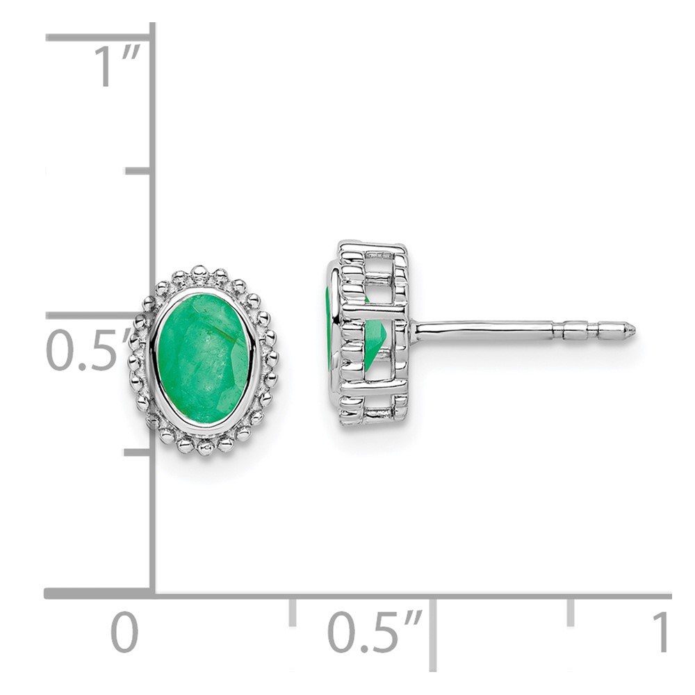 14k White Gold 5x3mm Oval Emerald Post Earrings